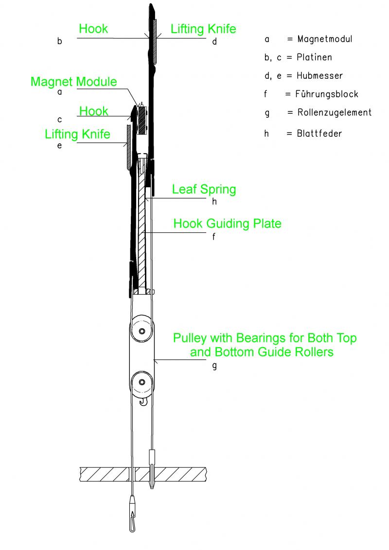 - Physical contact between Magnet and Hook is created by the lifting knife leading to minimum energy needs and consequently minimum heat load generation in magnet zone.