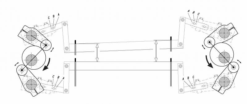 - Minor adjustments in shed opening is possible easily by changing the fulcrum point in the linkages. Also for heavy warp densities, Warp staggerring is possible with minor change in timing of cams. Hence combination and permutations of various Shed Geometry, as per needs can be easily adapted/modified lateron